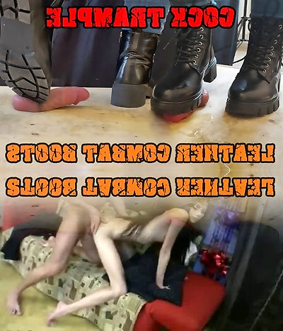 Crushing his Boner in Combat Boots Black Leather - CBT Bootjob with TamyStarly - Kneeing Balls, Femdom