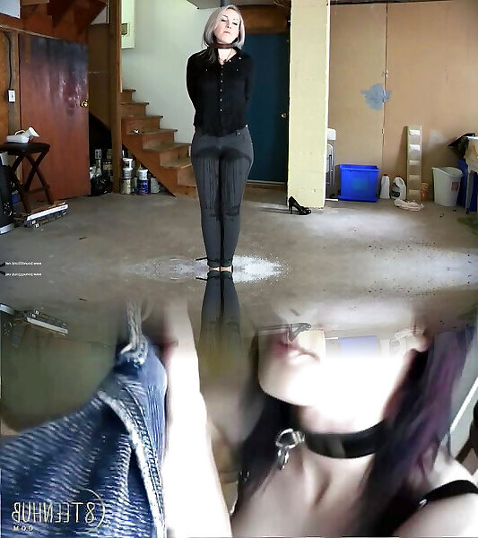 Femdome gimp smooch soles in dark-hued sock leggings handcuffs