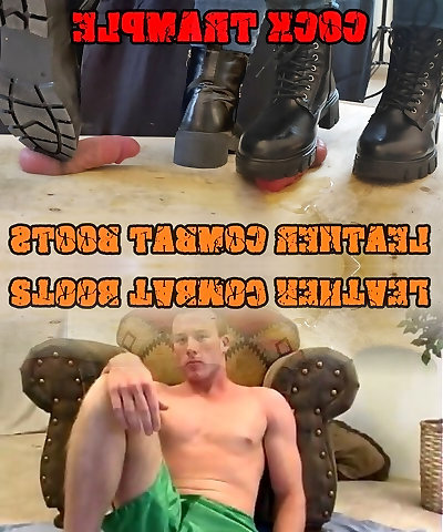 Crushing his Boner in Combat Boots Black Leather - CBT Bootjob with TamyStarly - Kneeing Balls, Femdom