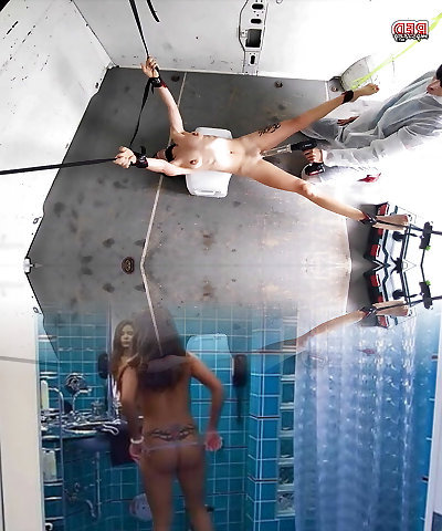 Fake Hostel - Slim blonde babe tied up and fucked by Futa MILF penis in bidy tights with oral and poon creampie orgasm