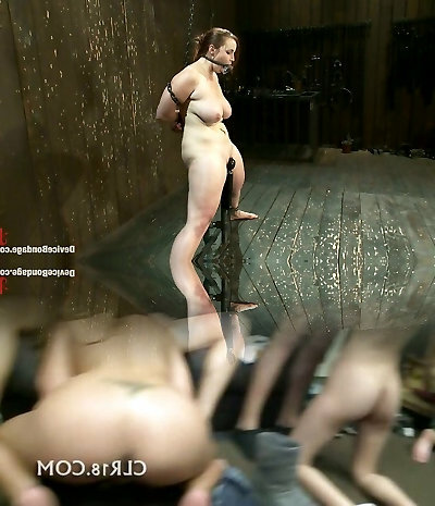 Bounded redhead chick with great slim figure is suspended and punished