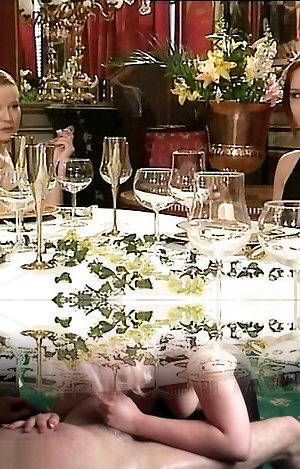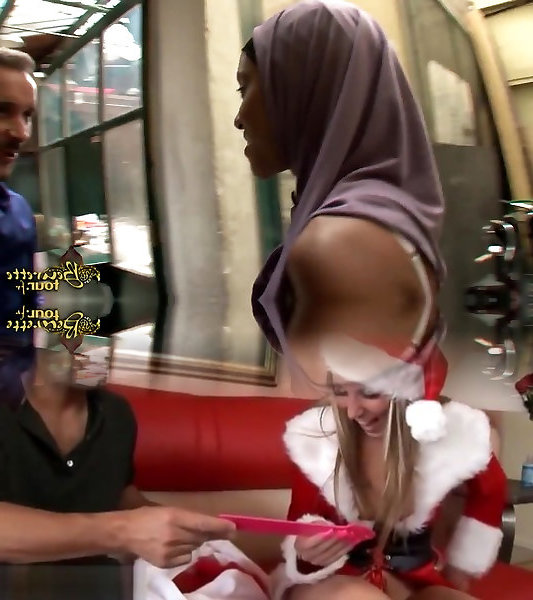 Messy super-fucking-hot ebony youthfull fuckslut on her knees feeding on a bunch of white stiffys