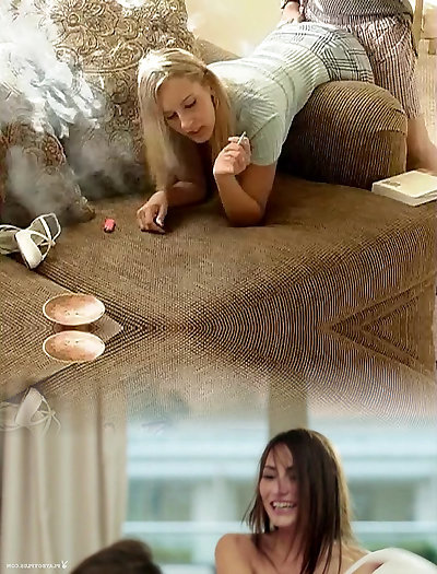 Astounding smoking video with gigantic globes, platinum-blonde, couple vignettes