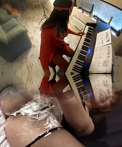 Sizzling step-mommy feeding her ass and pussy with piano teacher