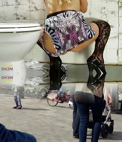 Desperate blonde milf with fake boobs waits inside the gloryhole for a big penis to inhale and fuck