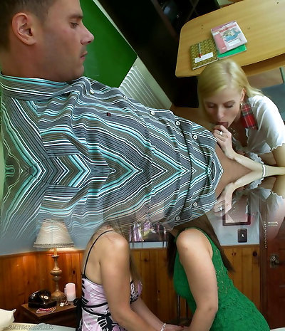 Two Super Hot Girls Dominate One Guy !!! He Cums 2 Times To Shaking Squirting Pussy - Cute Step Sister And Mate Threesome !!!