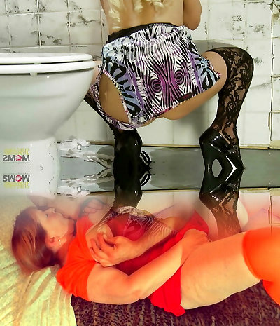 Desperate blonde milf with fake boobs waits inside the gloryhole for a big penis to inhale and fuck