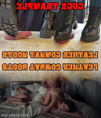 Crushing his Boner in Combat Boots Black Leather - CBT Bootjob with TamyStarly - Kneeing Balls, Femdom