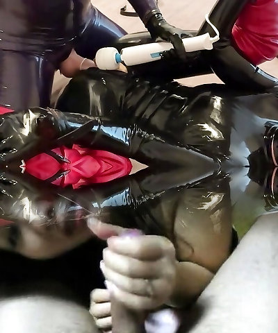 TouchedFetish - Amateur Fetish wife tied up in Bondage in glossy latex rubber catsuit and overknee shoes - Fucking Fuck my Wife
