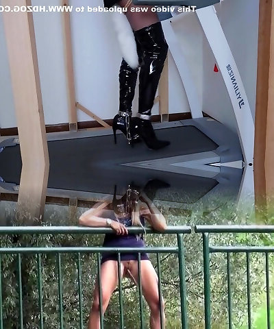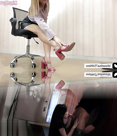 Footjob Shoejob in tigh high overknee leather boots latex gloves and glistening bodysuit expect you like my tits!