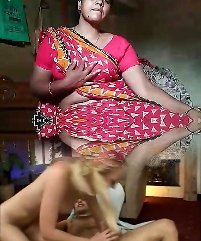 Tamil Milf Stepmom Stuck Under Bed with white saree & black blouse, when she cleaning under bed then son-in-law fuck her