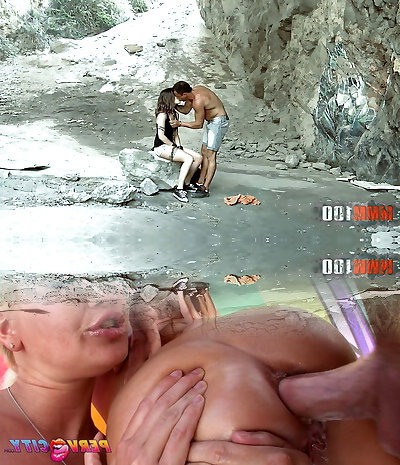 Married and blindfolded. A man with a gifted pecker gets his nads licked and handles the naughty girl's small mouth and cheeks.