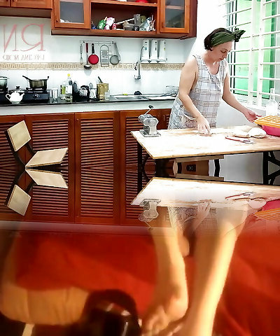 Ravioli Time! Naked Cooking. Regina Noir, a nudist cook at nudist hotel resort. Nude maid. Naked housewife. Gig 1