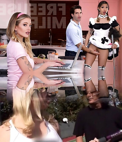 Sexy Maid Wife Cleaning Room in Tight Pants and Guy Couldn't Stand Against the Temptation of her Giant Ass