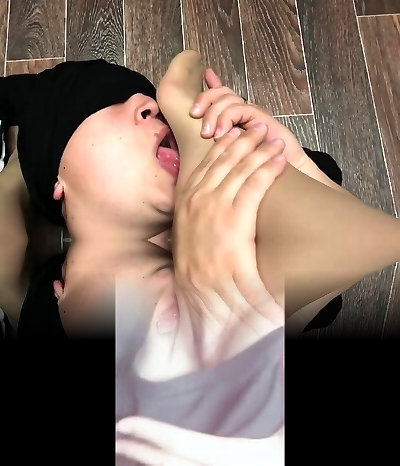 Blonde teen dame with perfect smallish feet fucked through shiny tan pantyhose screams as she gets poked by huge cock POV