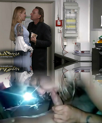 A nude maid is cleaning up in an bimbo IT engineer's office. Real camera in office.