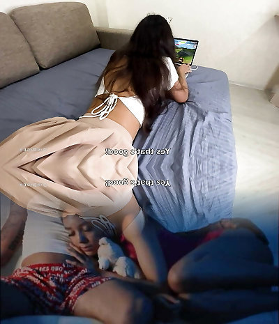 Hairy Pussy Hot Tight Brunette Catches Boyfriend Stroking and tries to Help Him Cum Quick by Fumbling his Sausage