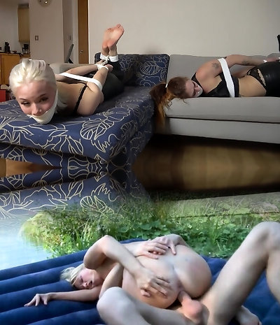 Redheaded Subgirl Gagged And Abjected With Spanking By Degrading Blonde Dominatrix In Kinky BDSM Basement